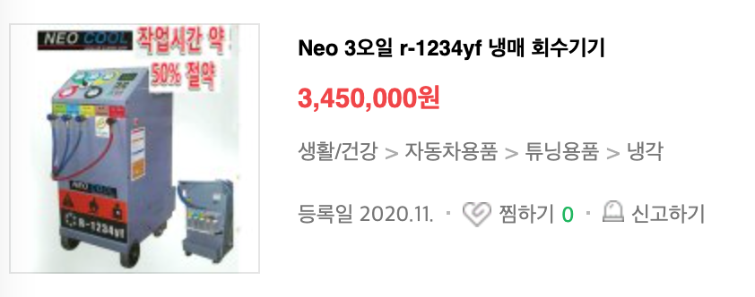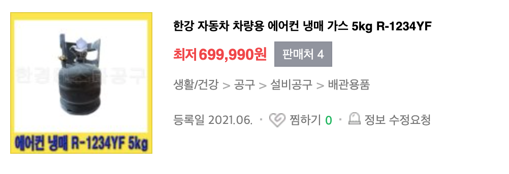 앞서 자동차 에어컨 가스 냉매 가격을 보고 많이 놀라셨을 것 같아요.