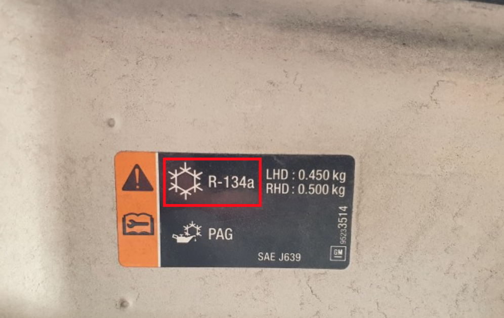 가장 확실한 방법은 자동차 보닛 앞쪽에 있는 스티커를 확인하는 방법입니다. 차량 보닛 안쪽 또는 윗면에 부착된 스티커에서 R-134A인지 R-1234YF인지 써있습니다. 만약 아무런 스티커도 없다면 대부분은 R-134A이라고 보면 됩니다.